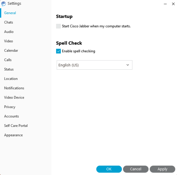 - Uncheck the box labeled Start Cisco Jabber when Windows starts.