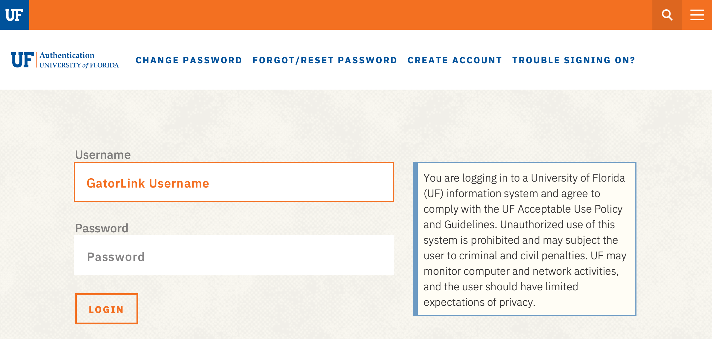 You will then be brought to the familiar Gatorlink Authentication page seen below